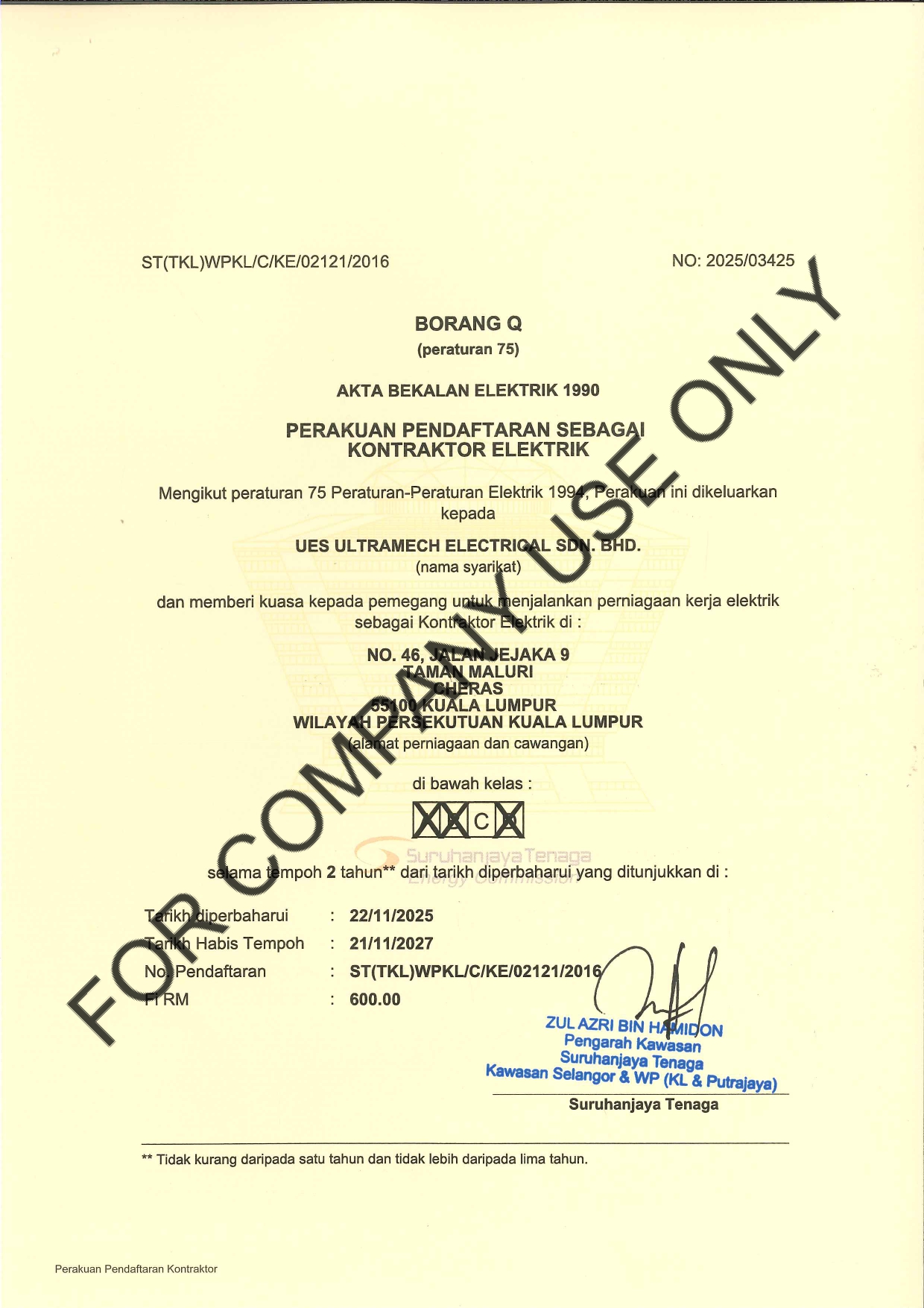 UES Ultramech Electrical Sdn Bhd is an electrical engineering company based in Kuala Lumpur, Malaysia. Our company has more than 20 years of electrical construction experience in a variety of industries including shopping malls, offices, hotels, bungalow houses, warehouses and education institutes in Malaysia. UES are PWT4, Suruhanjaya Tenaga, SEDA and CIDB certification holders to achieve a higher standard of safety and quality work for our clients. We are capable to provide 2D layout plans and single-line diagrams by using ZWCAD and AutoCAD software. We will continue expanding our services and capabilities to meet the evolving needs of our clients in future.